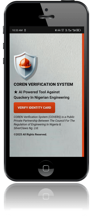 COVERS is an acronym for COREN Verification System and is a public-private partnership initiative between the Council for the Regulation of Engineering in Nigeria (COREN) and SilverClaws Ng. Ltd.